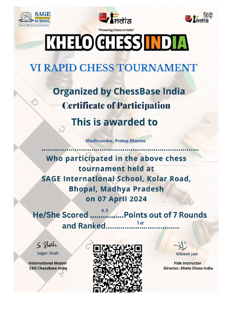 VI Khelo Chess Rapid Certificate PDF Religion Spirituality