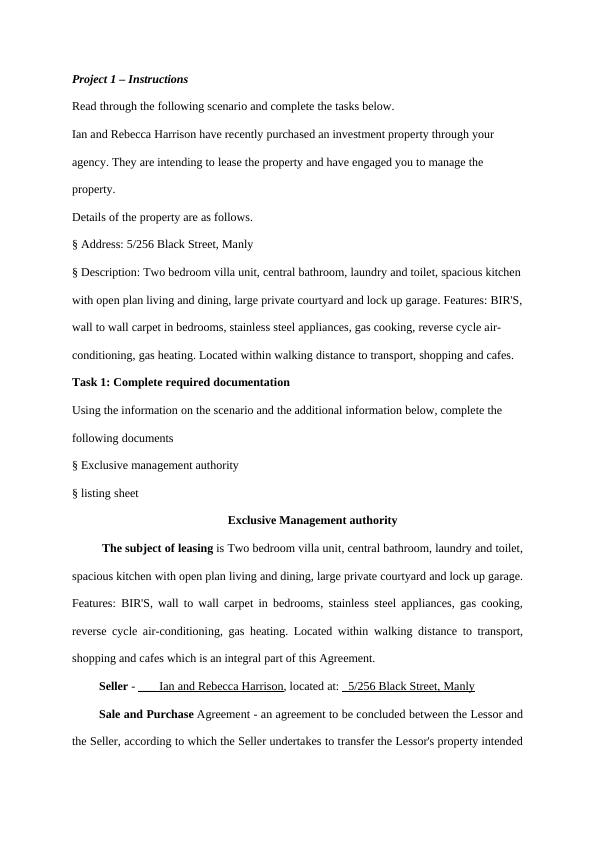 Real Estate: Property Management Project Assessment Task 3