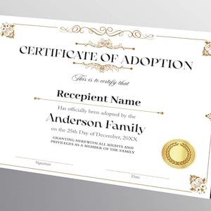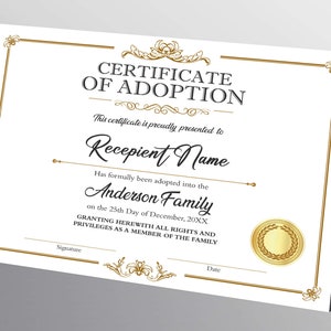 DIY Customizable Adoption Certificate for Child Template Posh Park