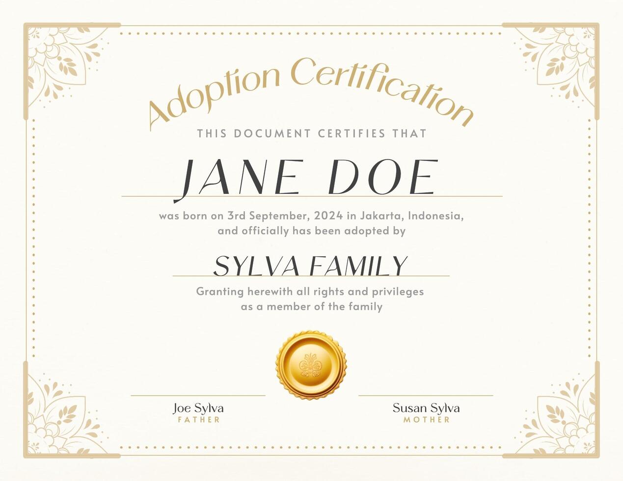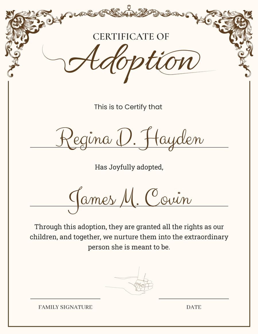 Light Brown Adoption Certificate Template Word Google Docs Highfile