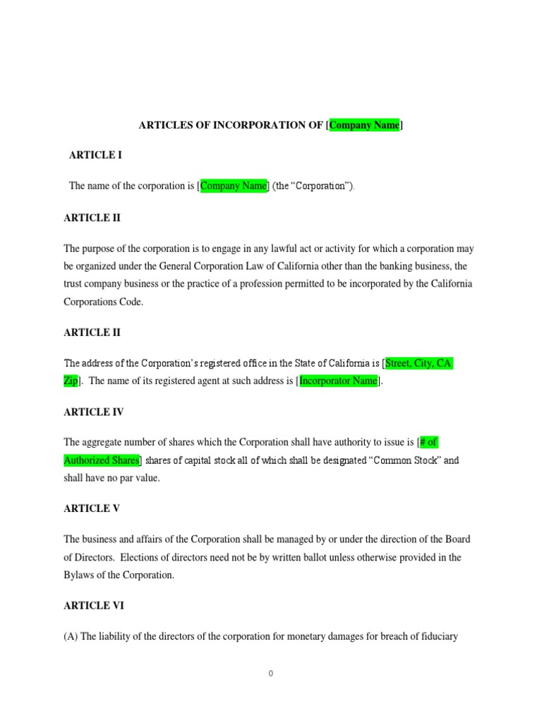 Valid California Articles of Incorporation Forms ≡ Fillable Template