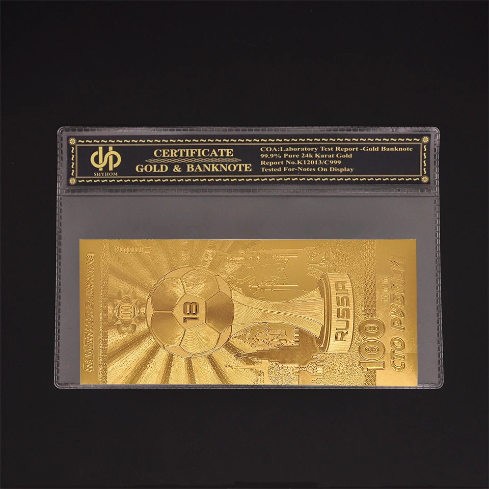 Russia 100 Ruble Gold Banknote 2018 World Cup Note Collection w