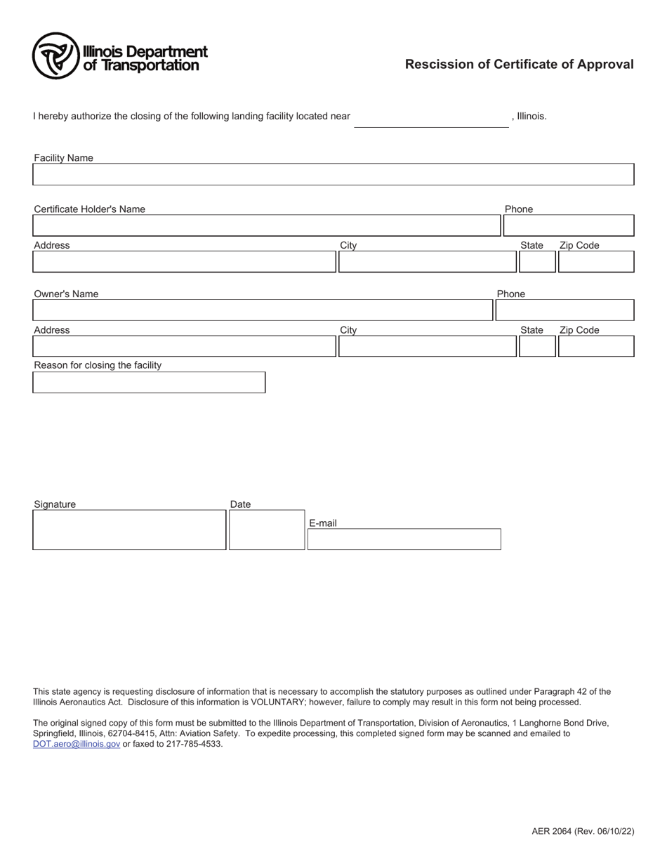 Form AER2064 Download Fillable PDF or Fill Online Rescission of