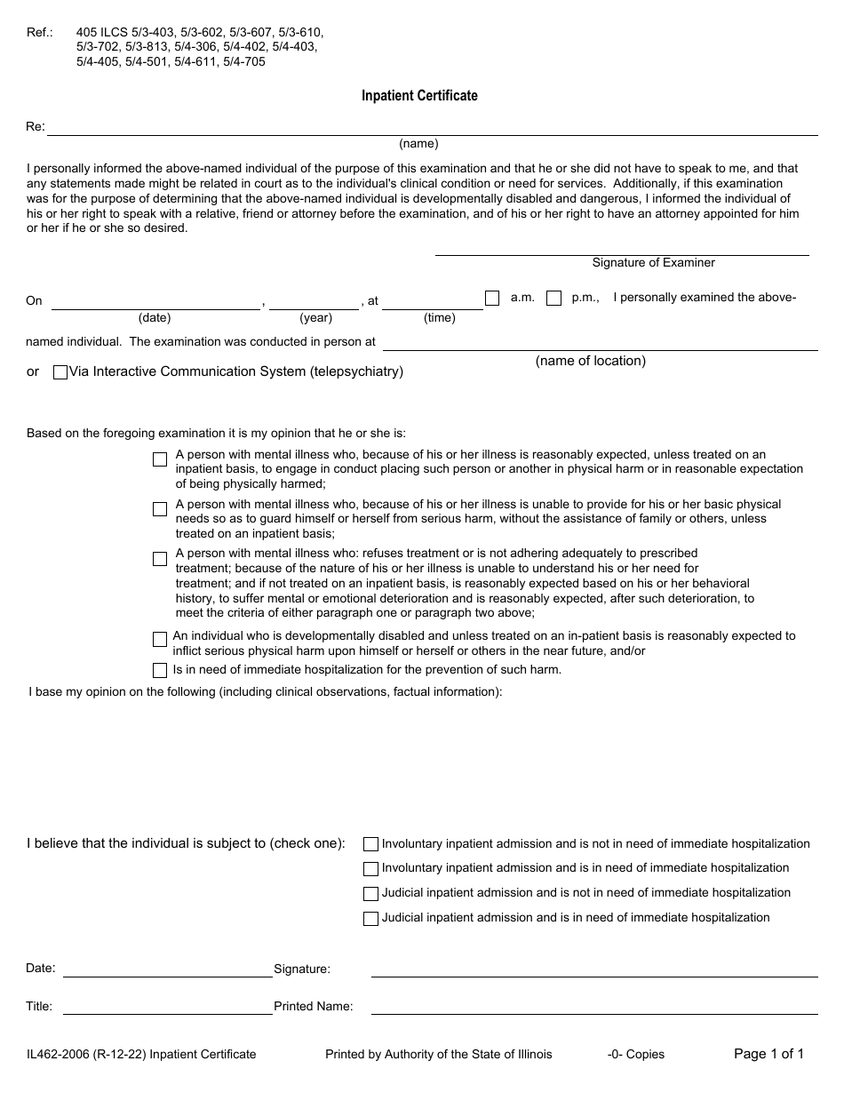Form IL462 2006 Fill Out Sign Online and Download Fillable PDF