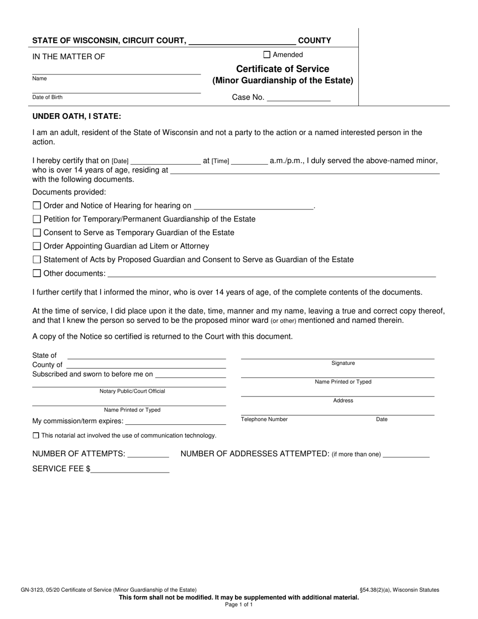 Wisconsin Certificate of Service Fill Out Sign Online and Download