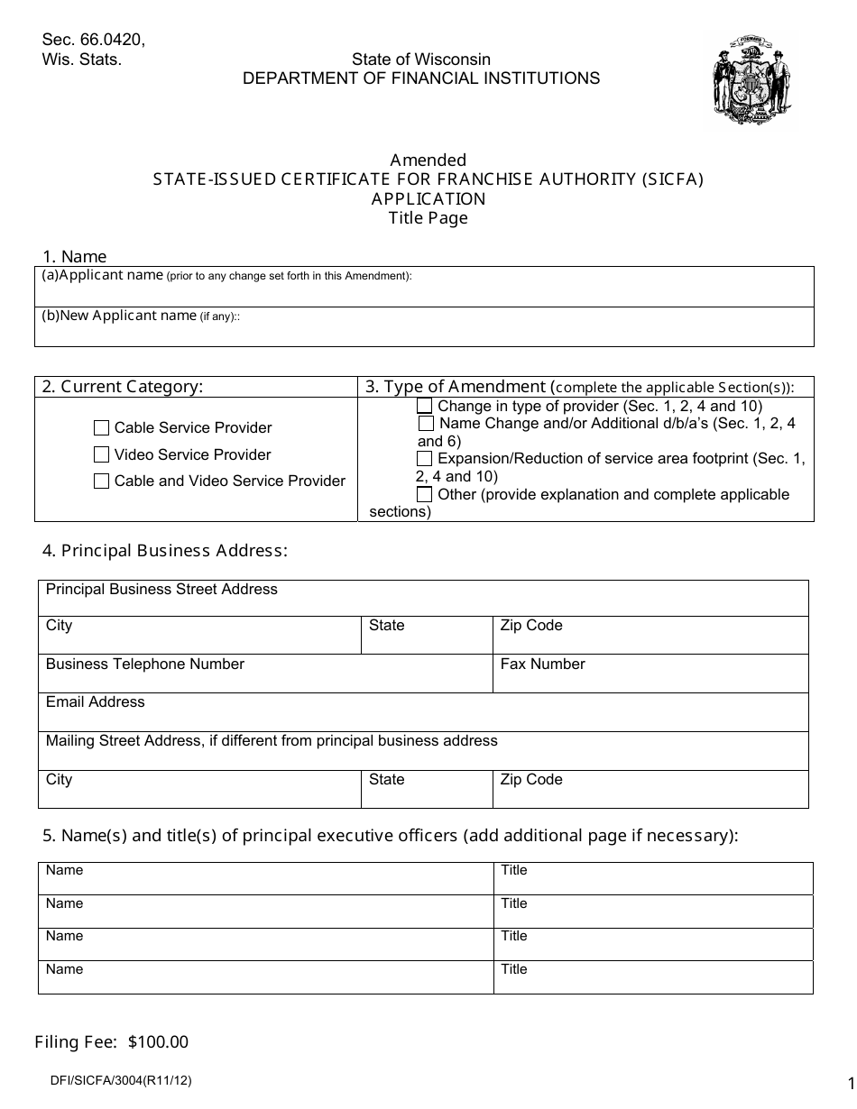 Form DFI/SICFA/3004 Fill Out Sign Online and Download Printable PDF