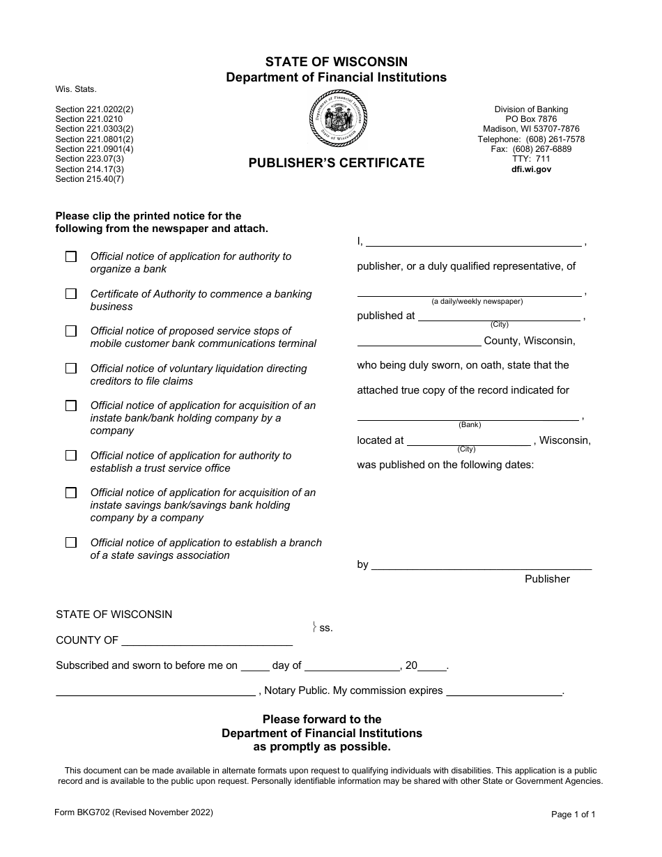 Form BKG702 Fill Out Sign Online and Download Fillable PDF