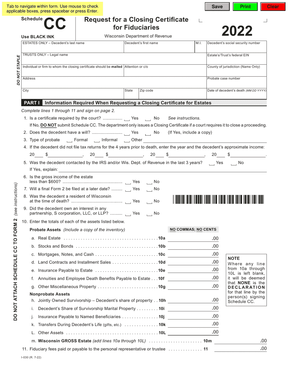 Form I 030 Schedule CC 2022 Fill Out Sign Online and Download