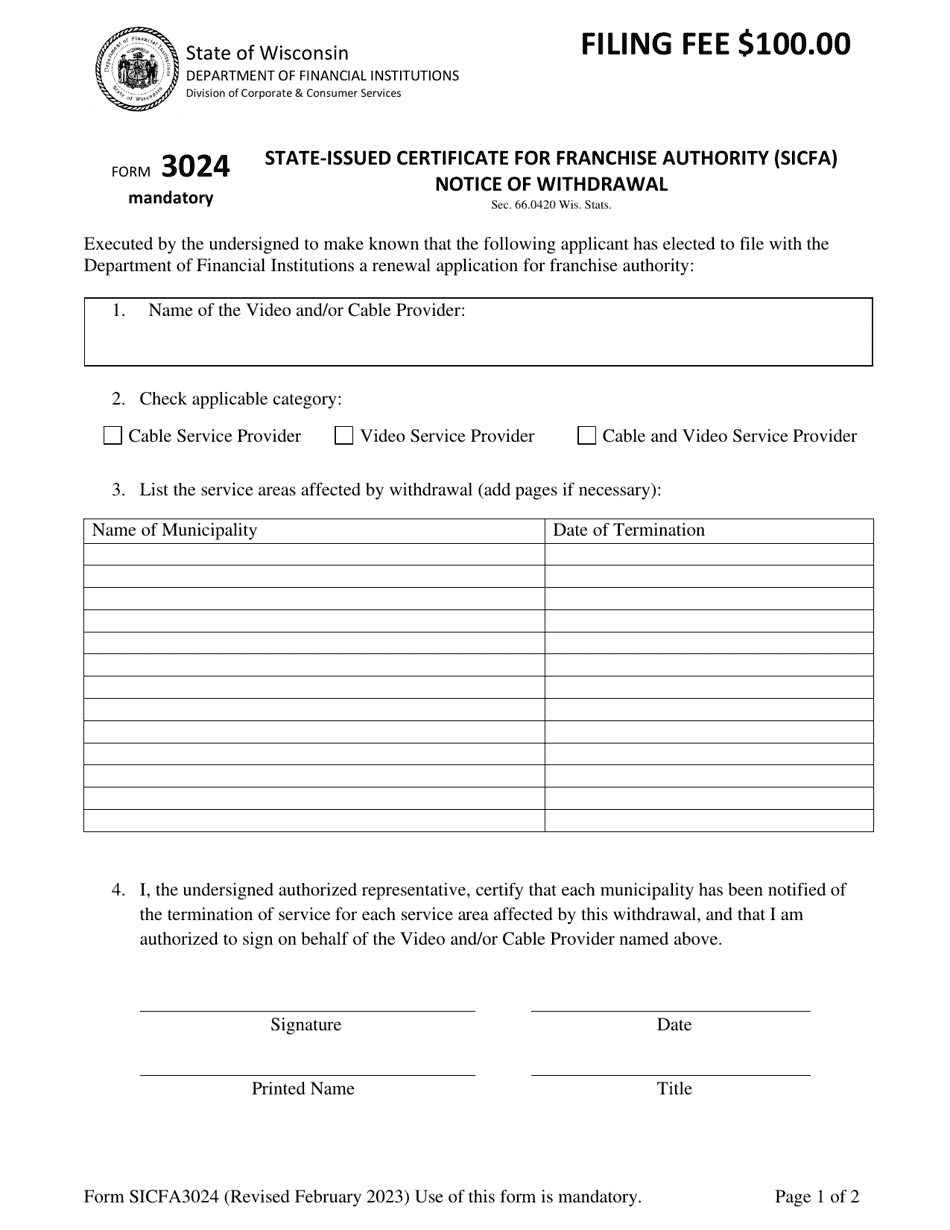 Form DFI/SICFA/3024 Fill Out Sign Online and Download Printable PDF