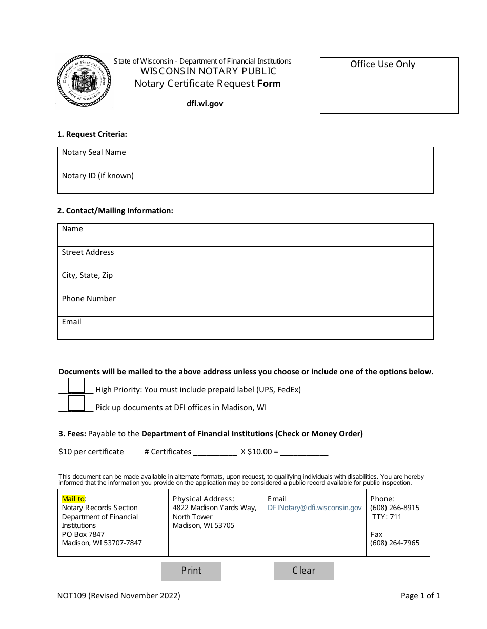 Form DFI/NOT/109 Fill Out Sign Online and Download Fillable PDF