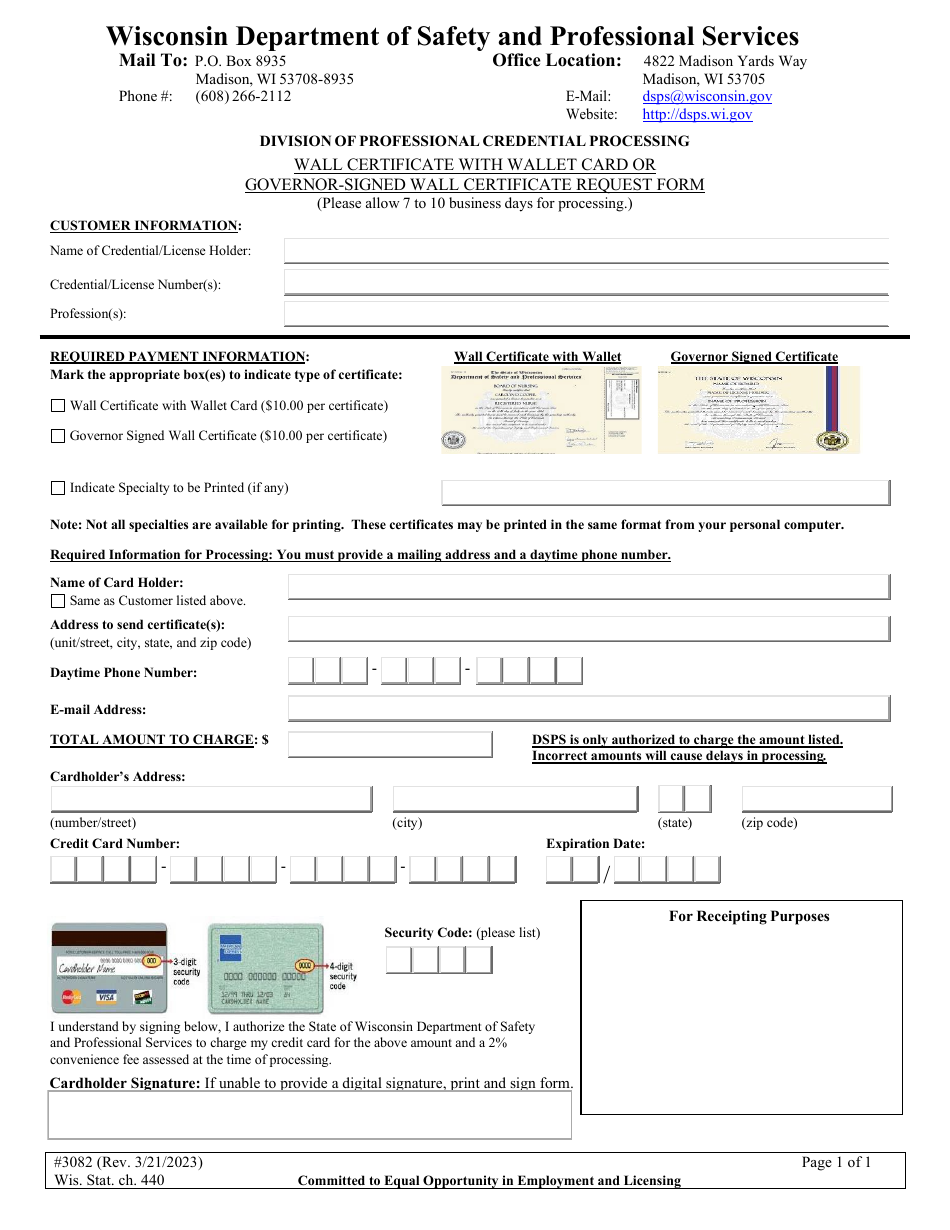Form 3082 Download Fillable PDF or Fill Online Wall Certificate With