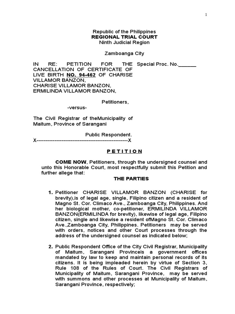 Petition for Cancellation of Certificate of Live Birth Judiciaries