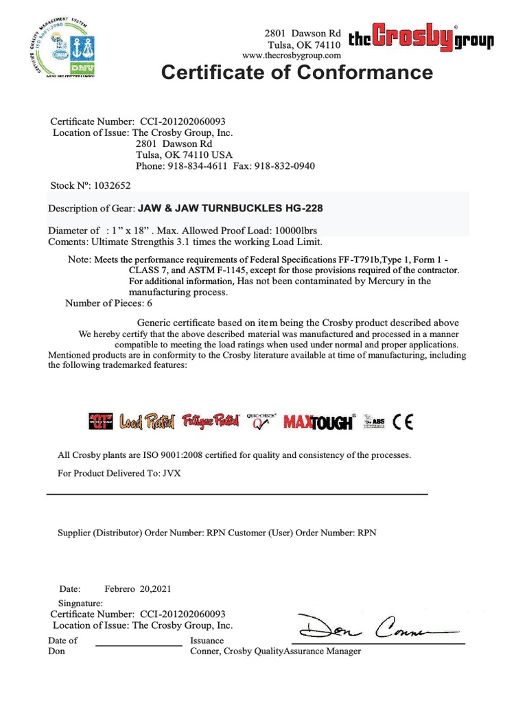 Certificate of Conformance PDF