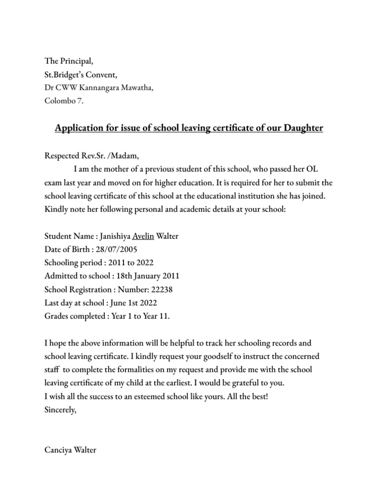 School Leaving Certificate Consent Form PDF