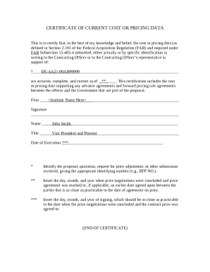 Fillable Online CERTIFICATE OF CURRENT COST OR PRICING DATA (FAR 15 Fax