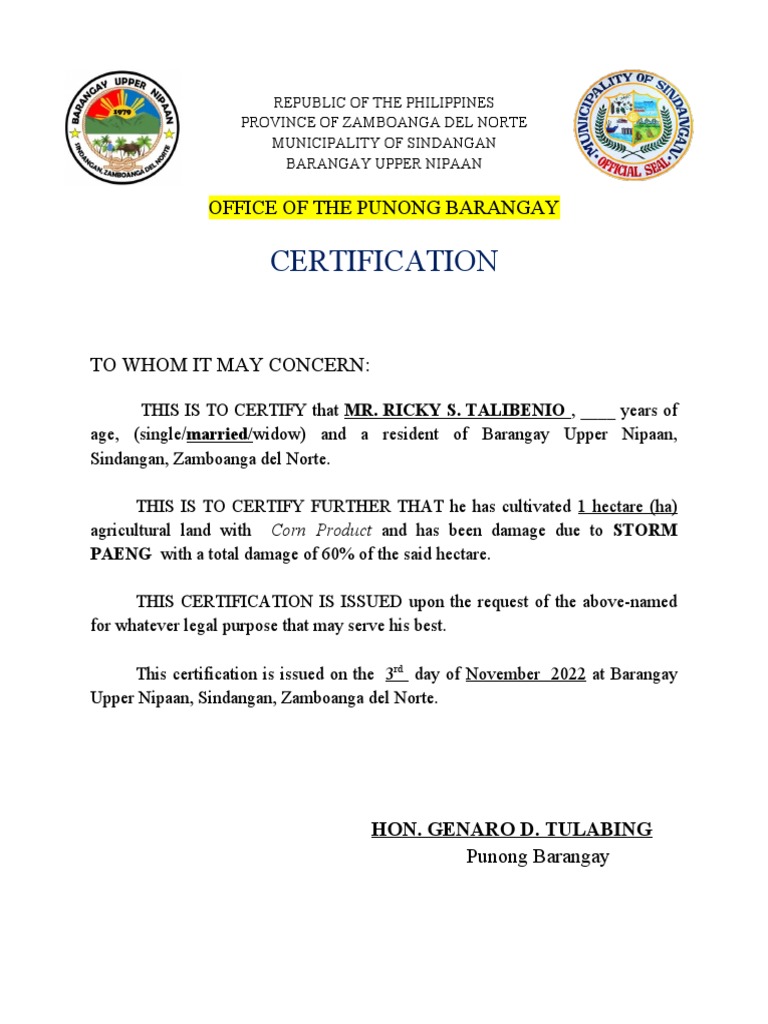 Barangay Certificate And Barangay Clearance Editable Fillable