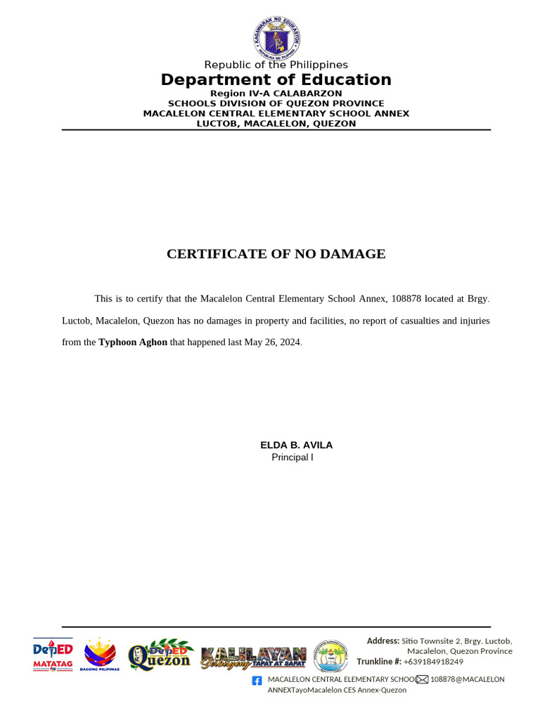 Certificate of No Damage 23 24 PDF Public Administration Philippines