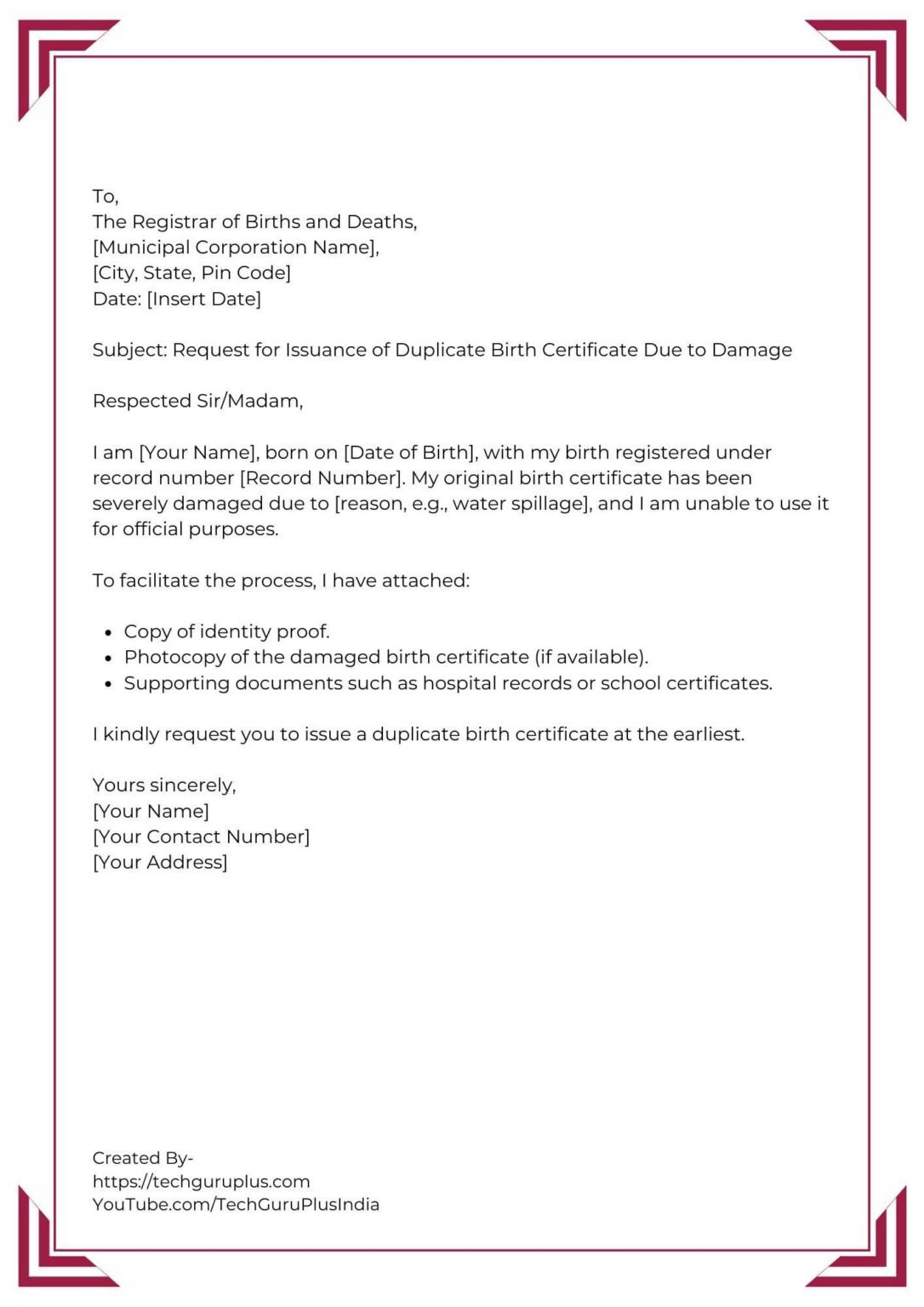 Application for Issuance of a Duplicate Birth Certificate 5 Format