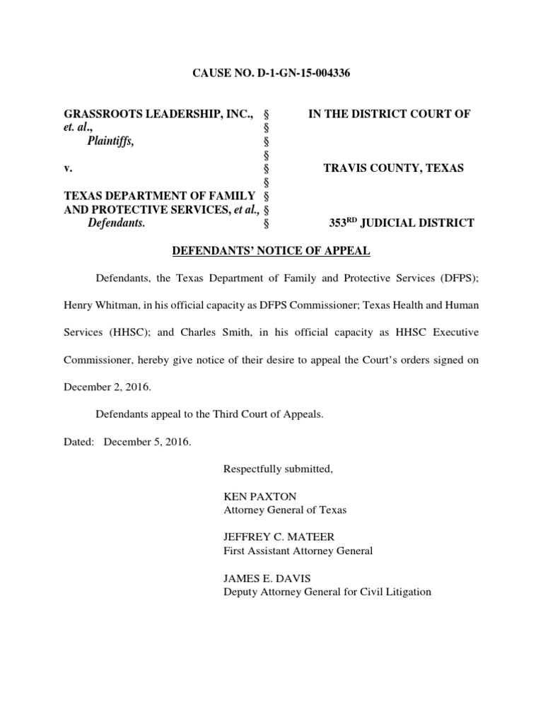 Notice of Appeal by Texas AG