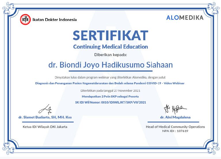Certificate Diagnosis Dan Penanganan Pasien Kegawatdaruratan Dan Bedah