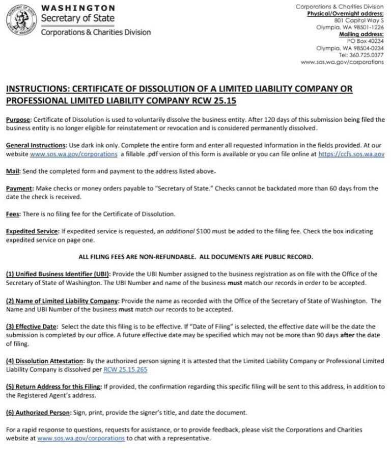 Certificate of Dissolution for an LLC in Washington State LegalClarity