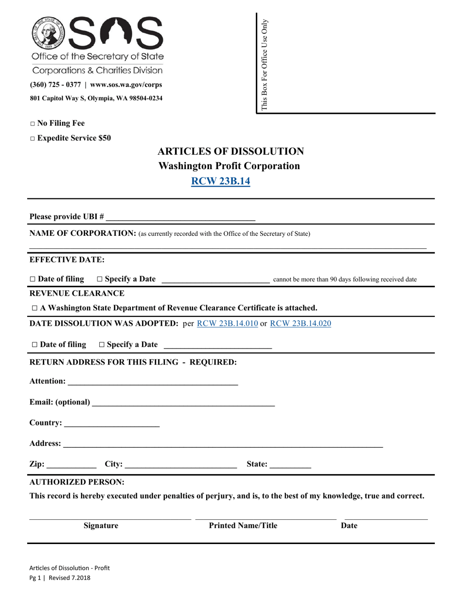 Washington Articles of Dissolution Washington Profit Corporation