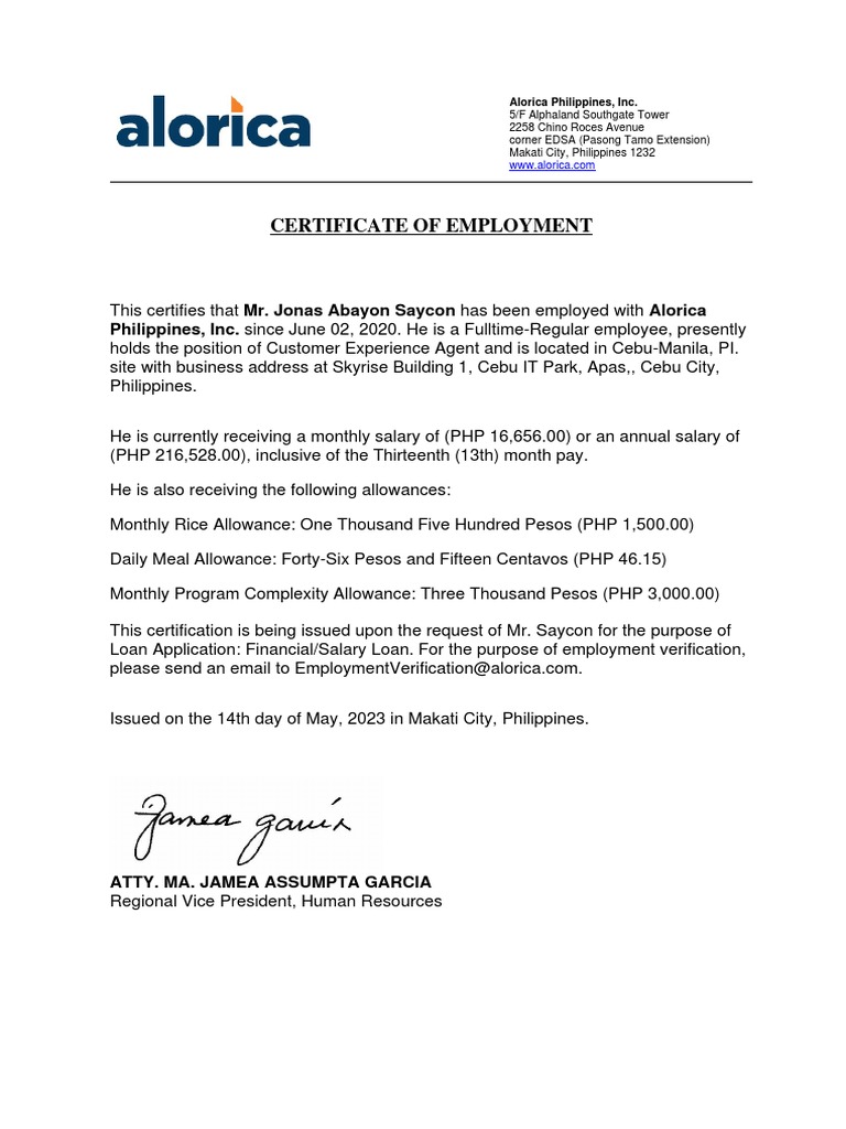 Certificateof Employment Concentrix CVG Philippines Inc 6798 Ayala