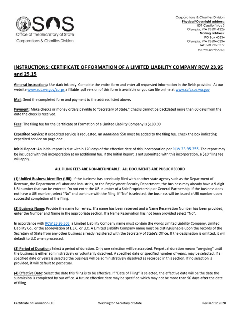 Washington Certificate of Formation: Walk Through Guide