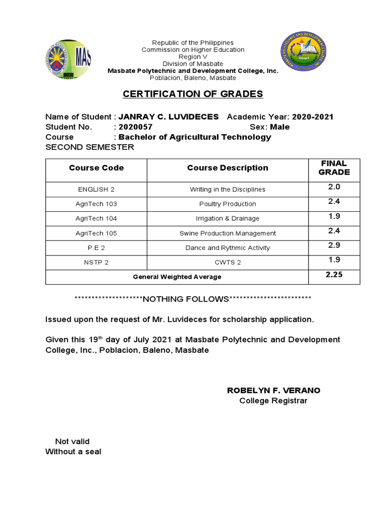 Here are some of the images for Certificate Of Grades that we found in our website database.
