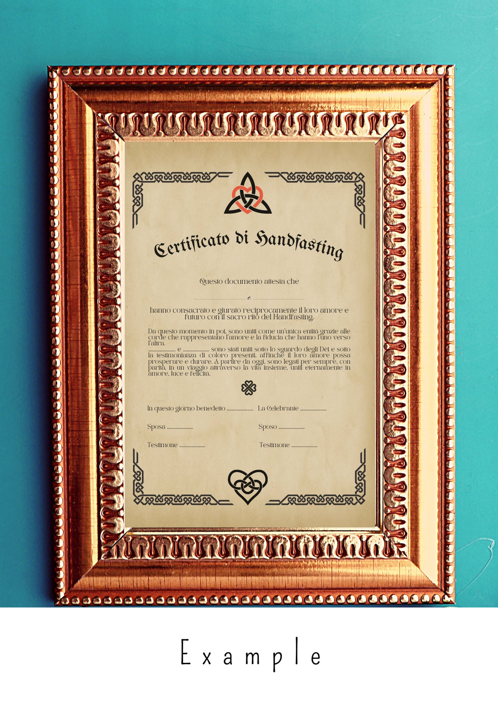 Certificate of Handfasting Pagan Wedding Celtic Marriage Matrimonio
