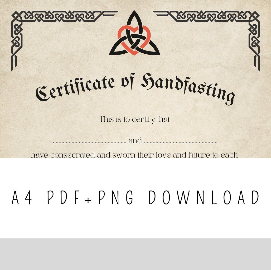 Printable HANDFASTING CERTIFICATE 01 Wedding Marriage Etsy Australia