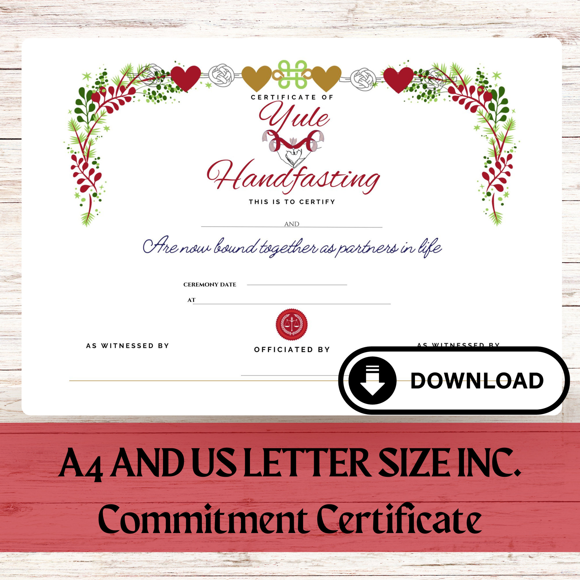 Handfasting Certificate of Commitment for Life Yule Handfasting