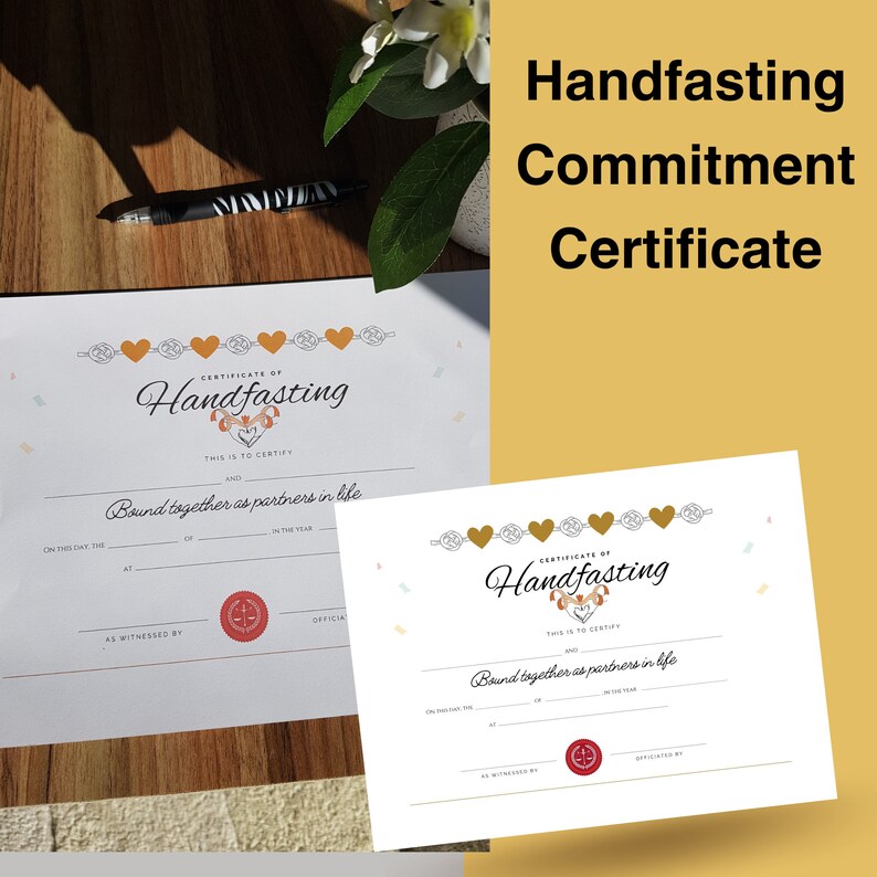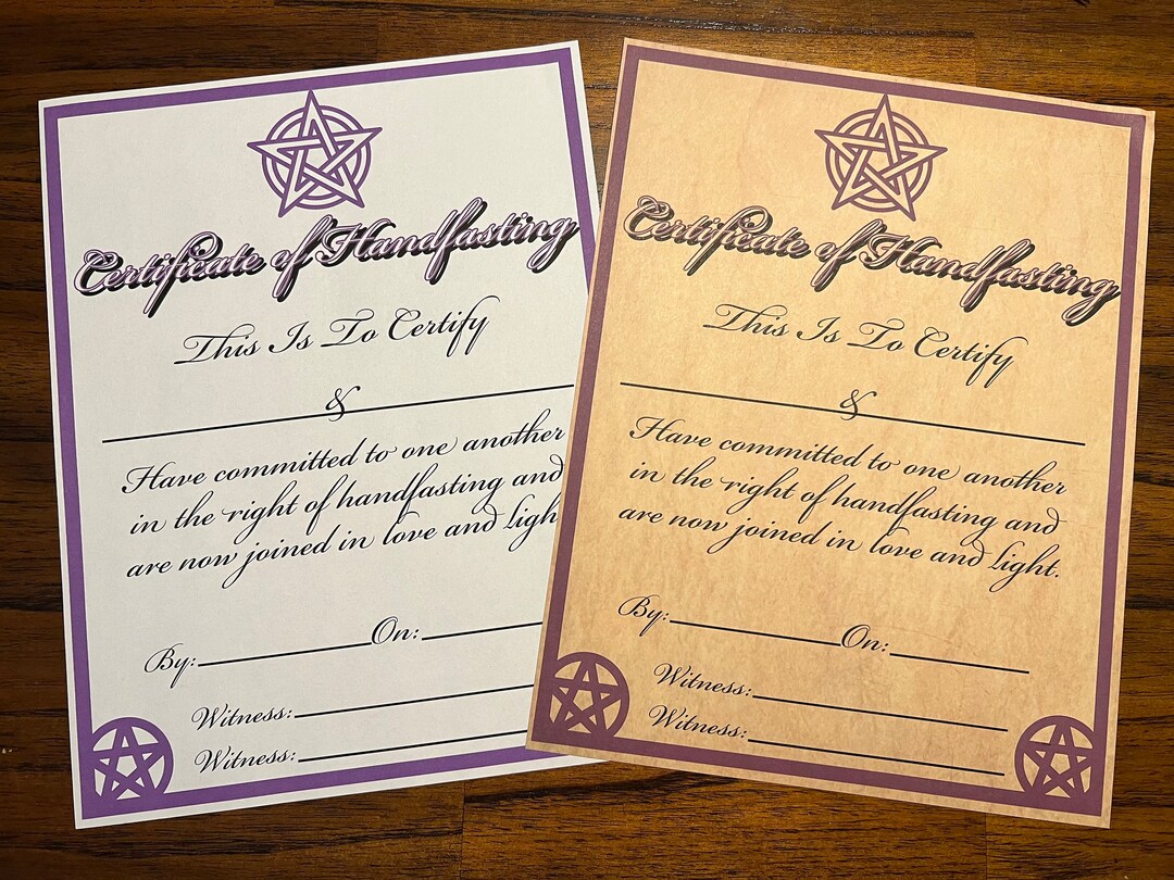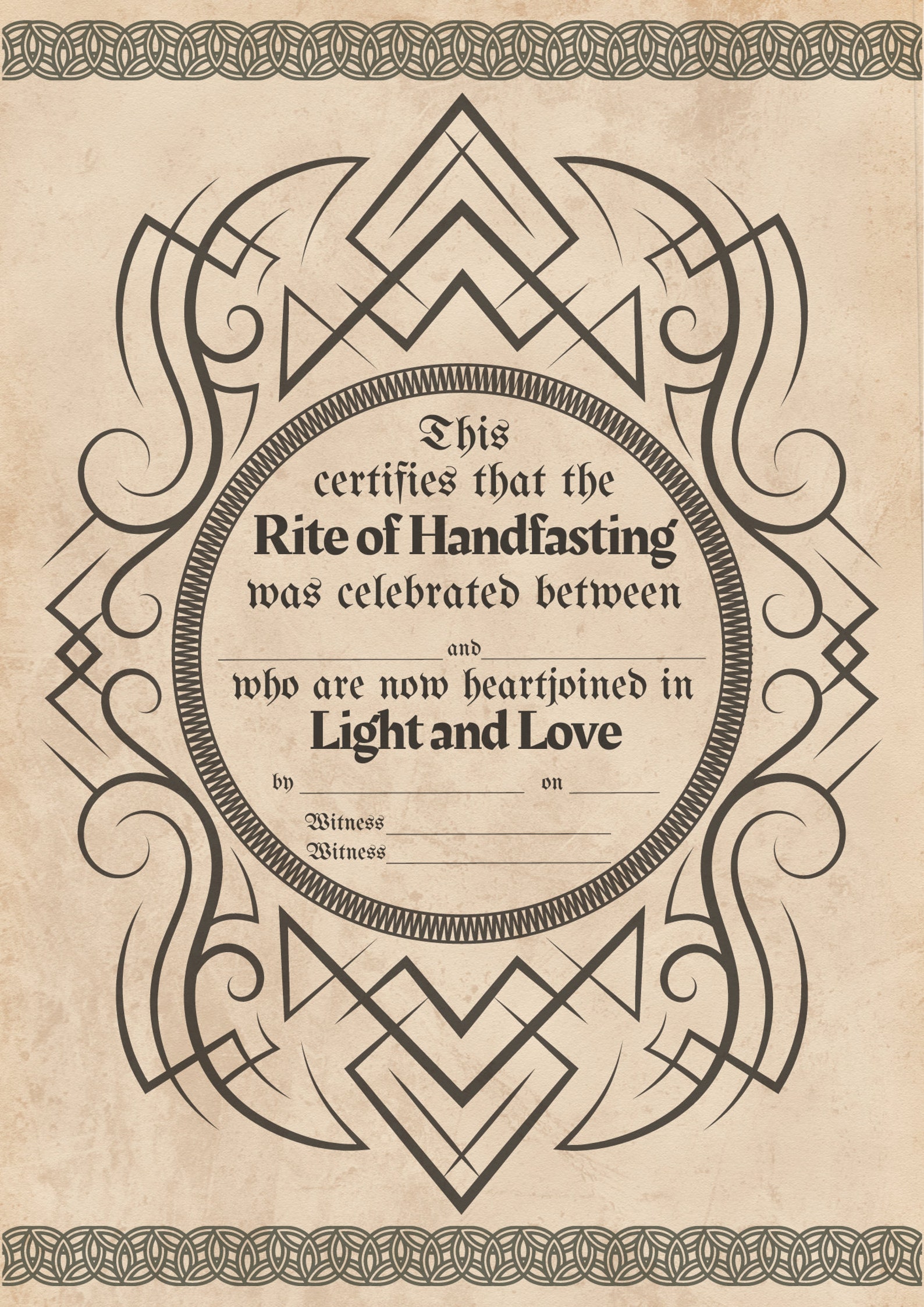 Certificate of Handfasting Pagan Wedding Wiccan Hand fasting