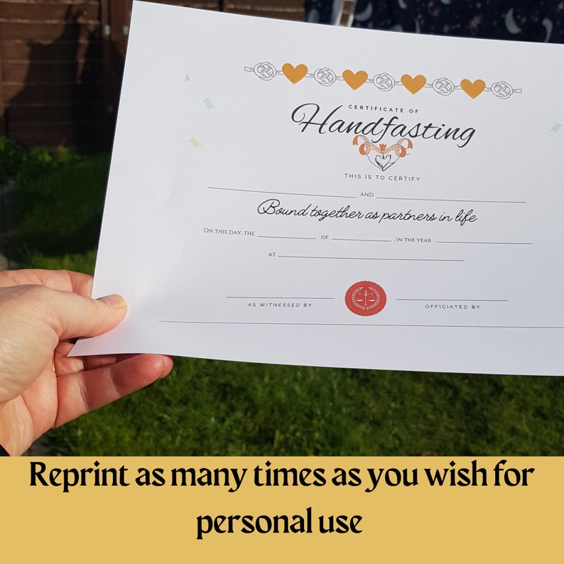 Printable HANDFASTING CERTIFICATE 05 Wedding Marriage Etsy Australia