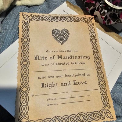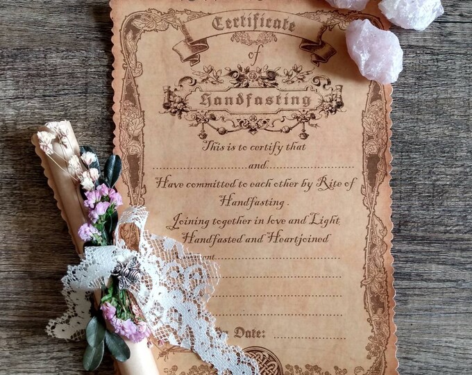 Certificate of Handfasting PHYSICAL COPY on Vintage Style Etsy