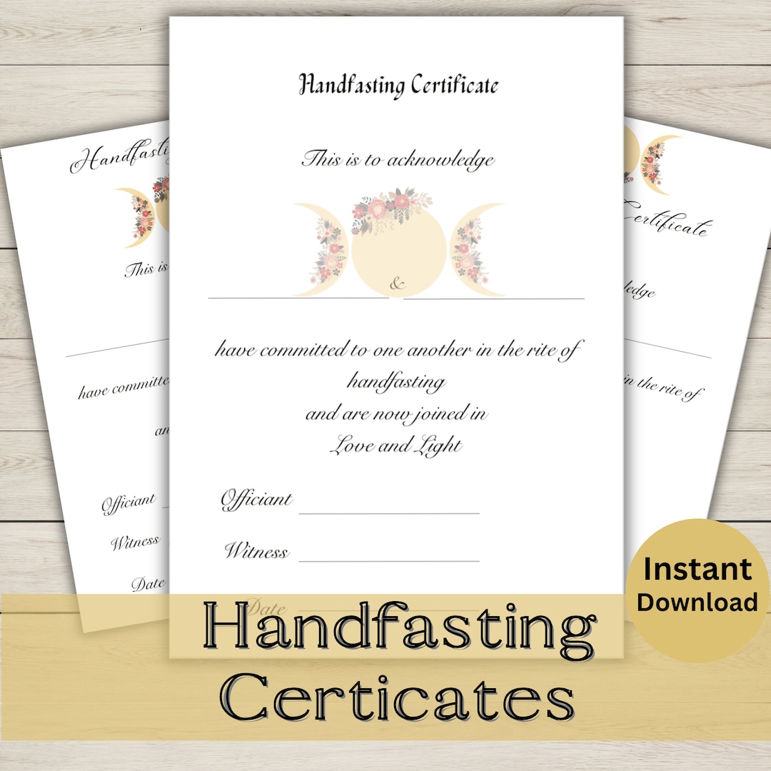 Handfasting Certificates White and Gold Pagan PDF Etsy