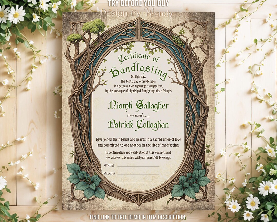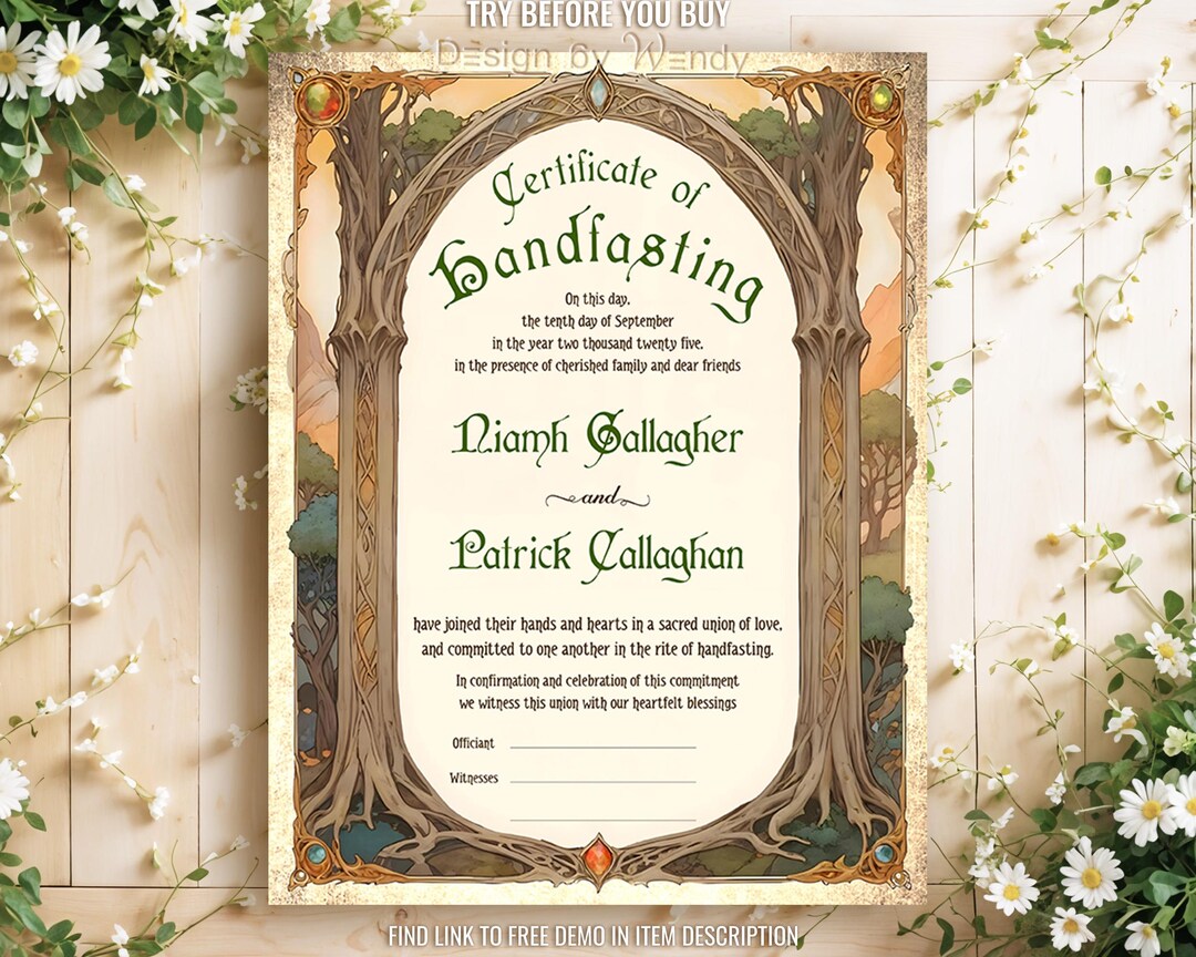 Celtic Handfasting Certificate Template Art Nouveau Fantasy Editable
