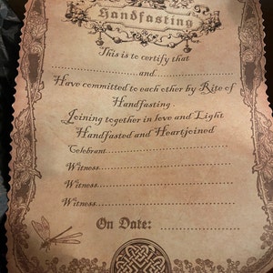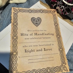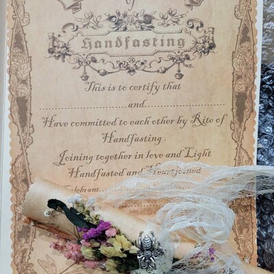 Handfasting Certificate Wedding Marriage Parchment Wicca Pagan Hand