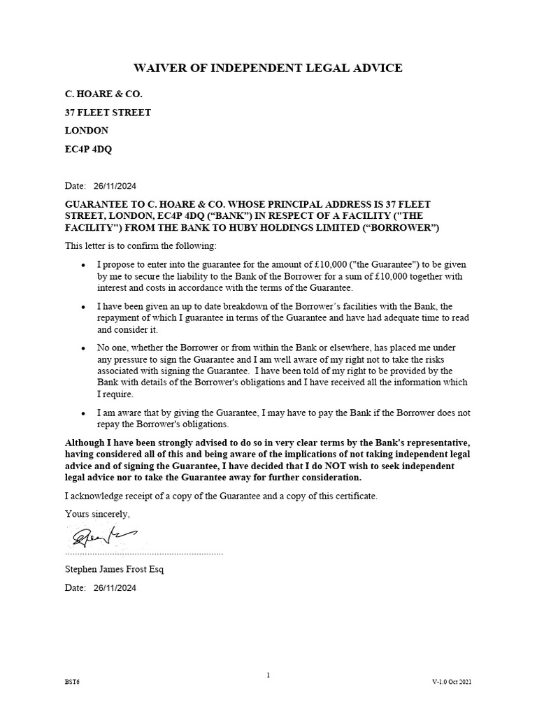 Certificate of Independent Legal Advice Guarantee Waiver v 1 0 PDF