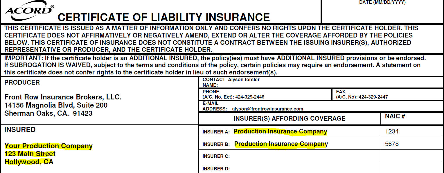 Producer s Guide: Certificates of Insurance in Film Wrapbook