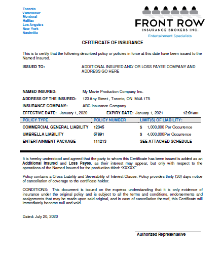 Canadian Filmmakers: Navigating Your Certificate of Insurance