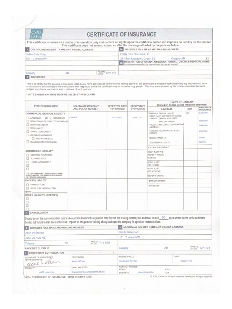 Certificate of Insurance PDF PDF