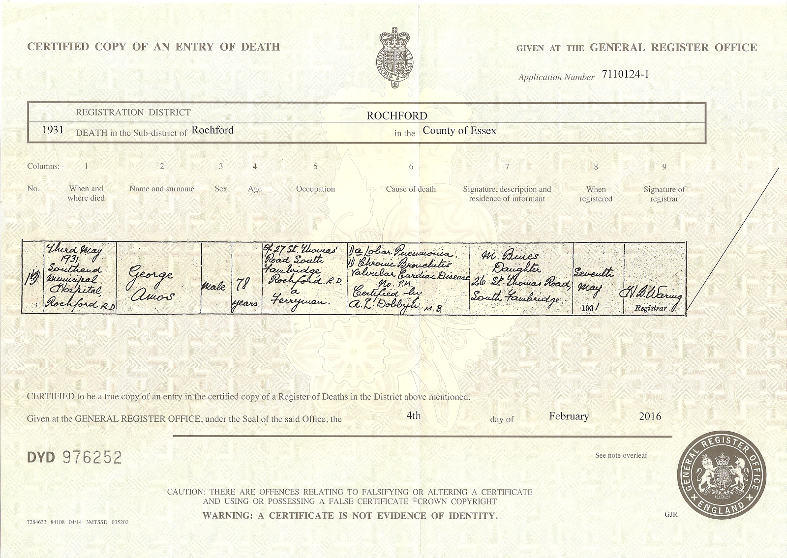 death certificate Avenue St Andrew #39 s United Reformed Church Southampton