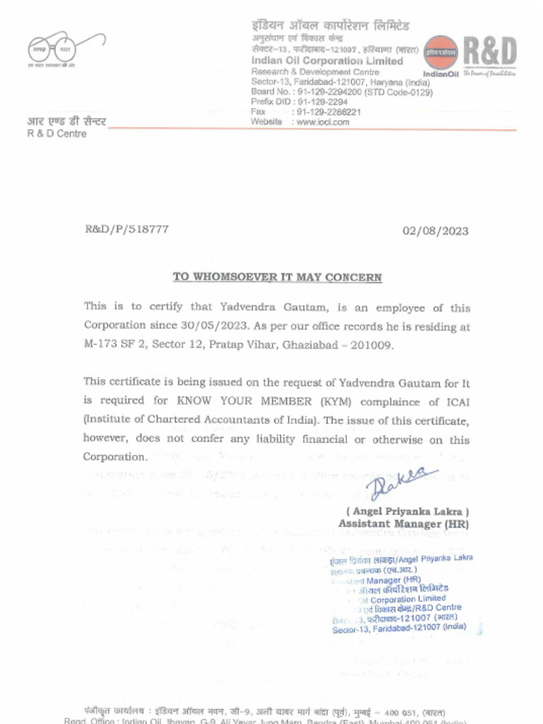 Address Certificate PDF