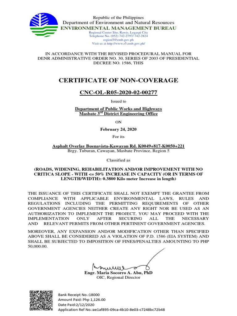 Projects falling under Category D (CNC) Certificate of Non Coverage