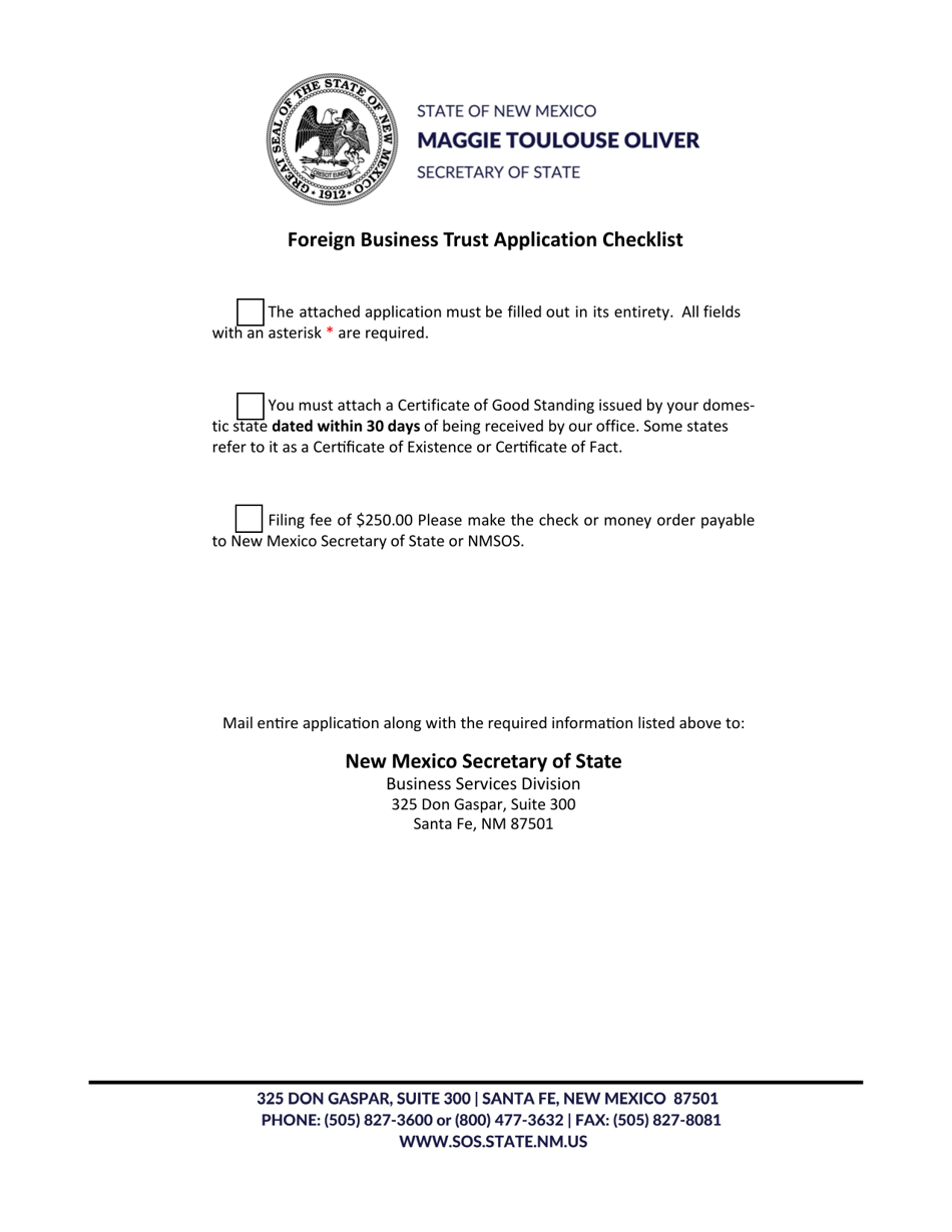 New Mexico Foreign Business Trust Application for Certificate of