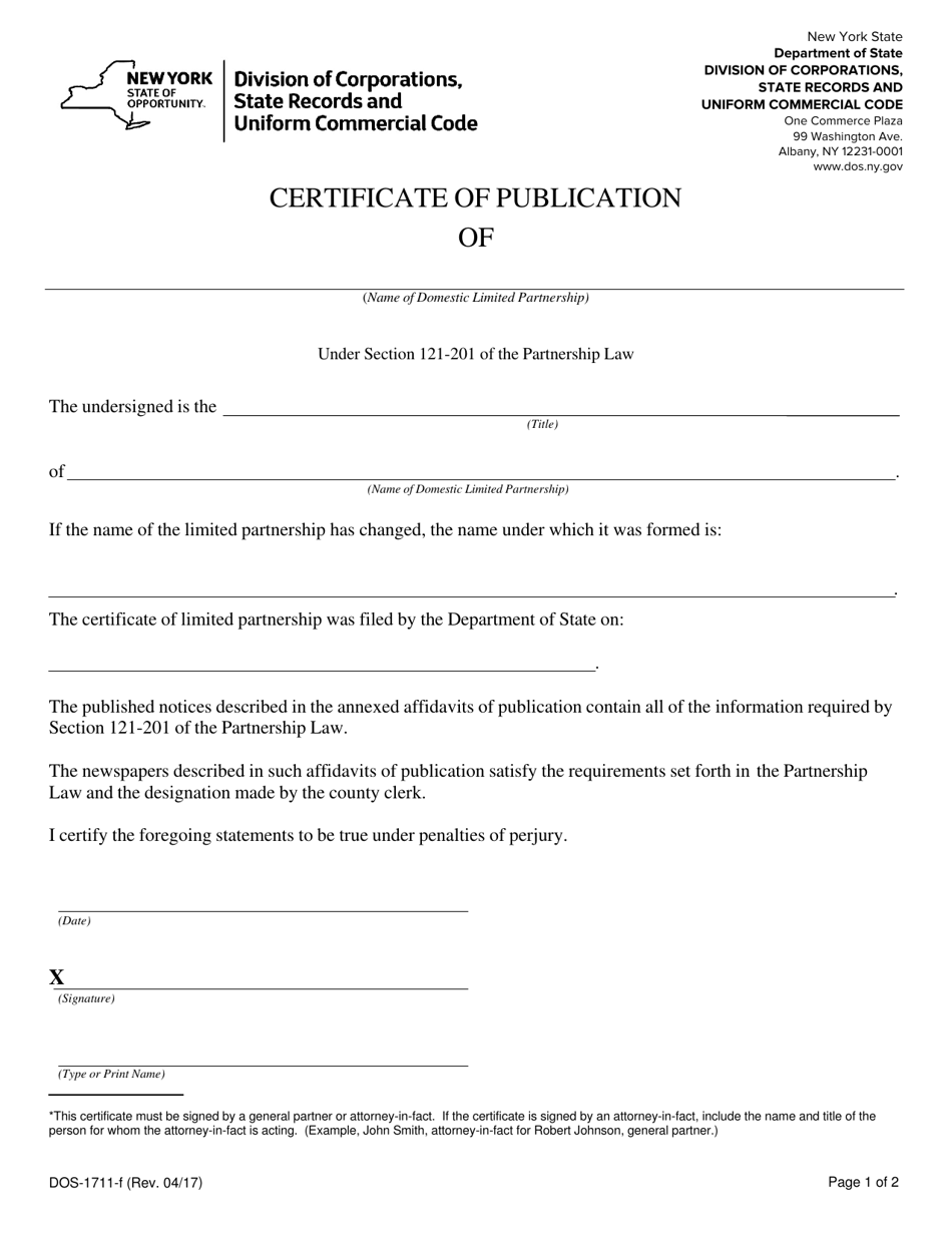 Form DOS 1711 F Fill Out Sign Online and Download Fillable PDF New