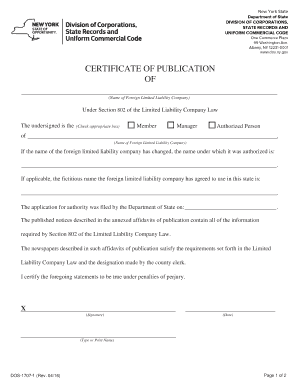 Fillable Online dos ny govcertificate publication domesticCertificate