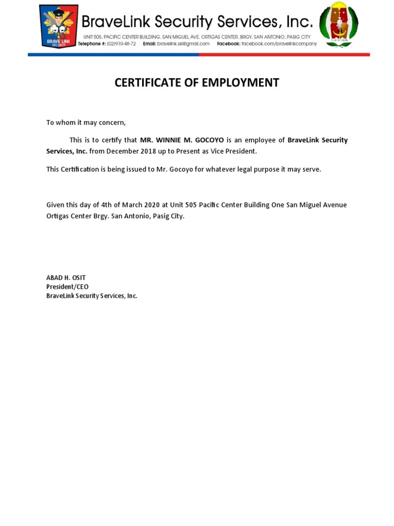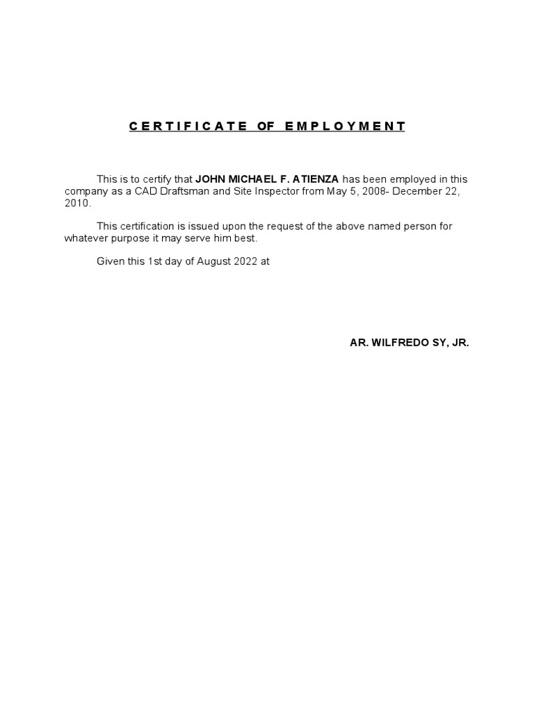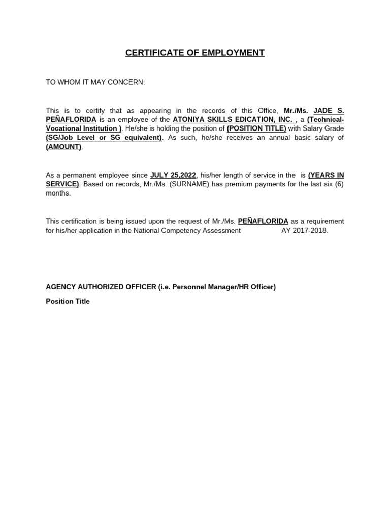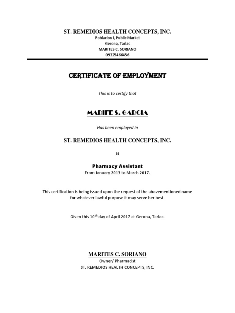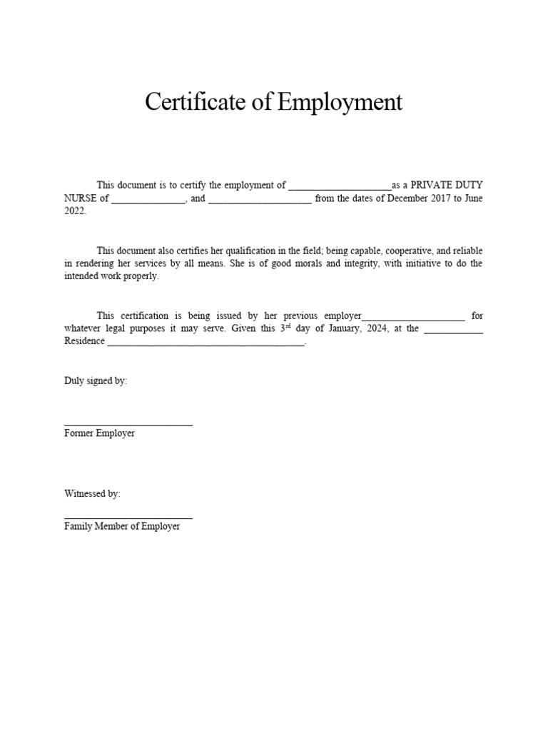 9 Free Certificate Of Employment Word Excel PDF Formats