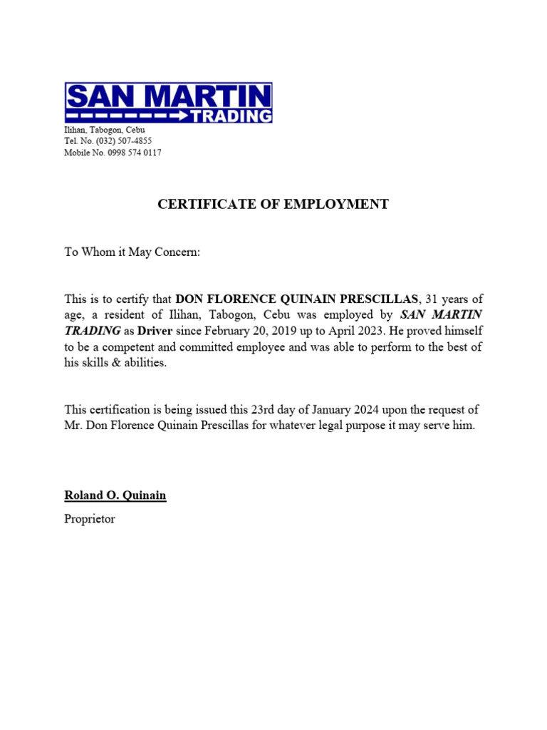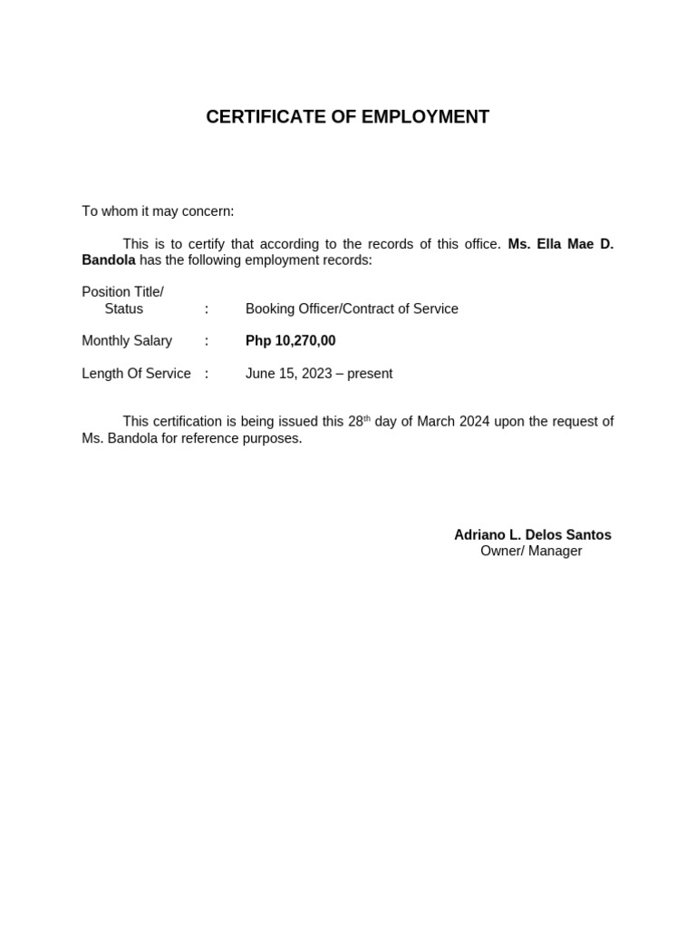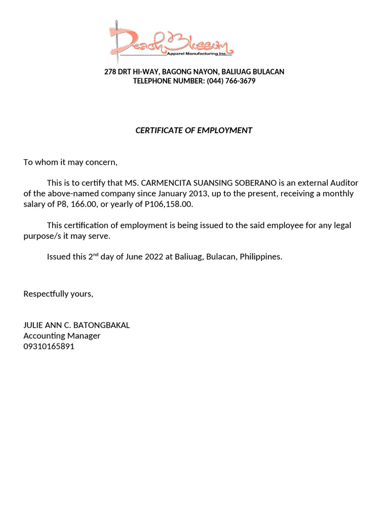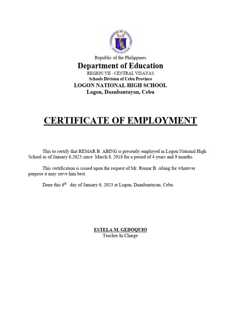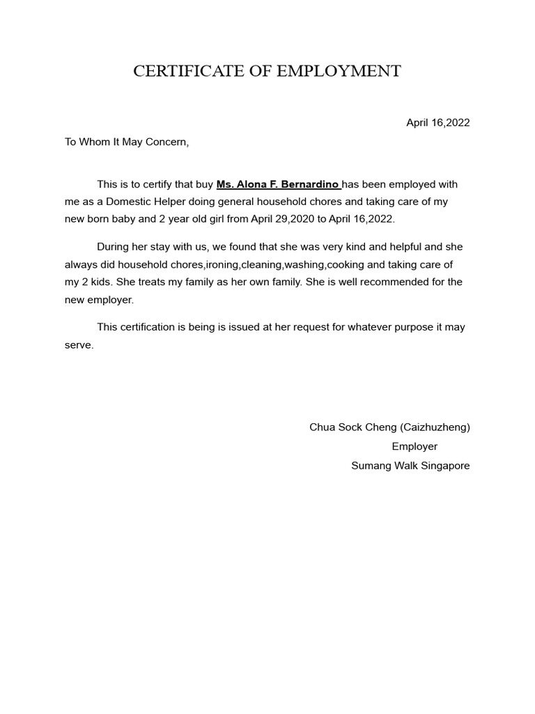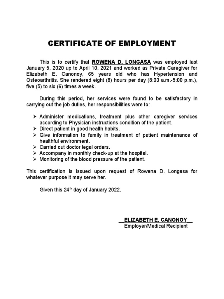 9 Free Certificate Of Employment Word Excel PDF Formats